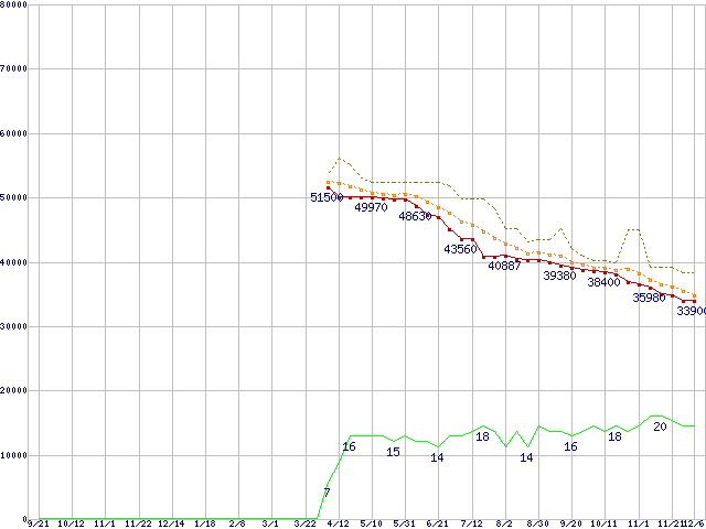 | HDS721010KLA330 (1TB,32MB)の価格推移 | | | (2006年9月21日~2007年12月6日) |