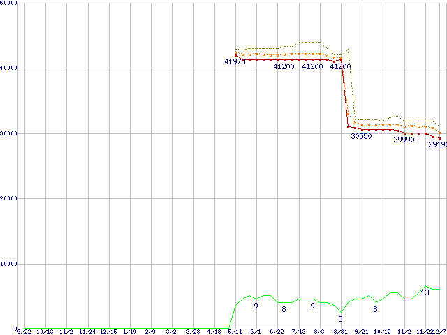 | Core 2 Duo T7500 (2.2GHz,L2 4MB)の価格推移 | | | (2006年9月22日~2007年12月7日) |