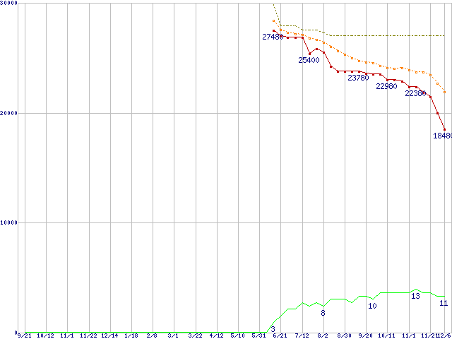 | WD7500AAKS (750GB)の価格推移 | | | (2006年9月21日~2007年12月6日) |