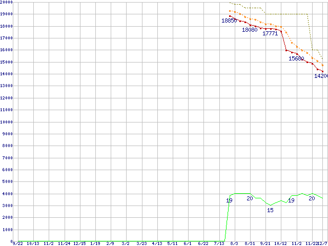 | Core 2 Duo E4500 (2.20GHz,L2 2MB)の価格推移 | | | (2006年9月22日~2007年12月7日) |