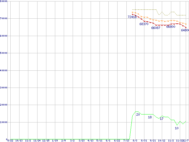 | Core 2 Quad Q6700 (2.66GHz,L2 4MB×2)の価格推移 | | | (2006年9月22日~2007年12月7日) |