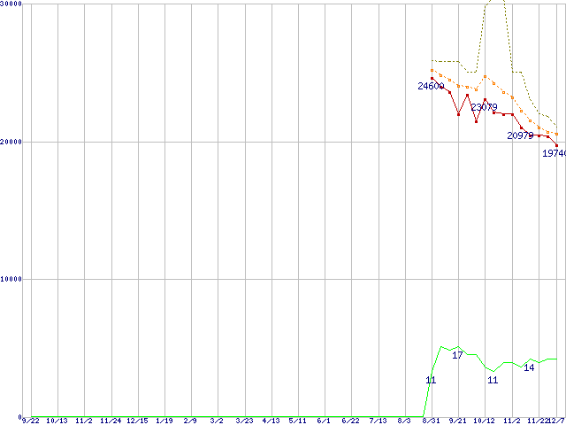 | Athlon 64 X2 6000+ (3.0GHz,L2 1MB×2,TDP 89W)の価格推移 | | | (2006年9月22日~2007年12月7日) |