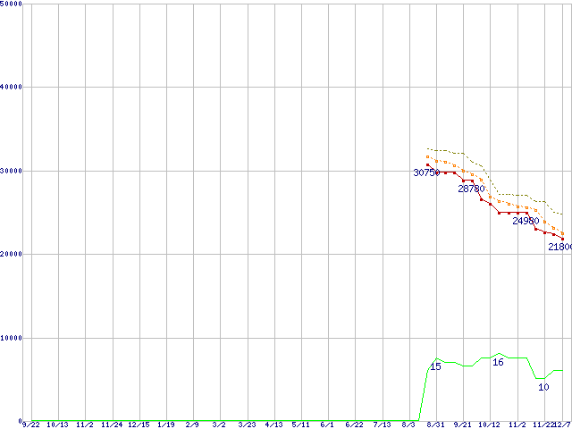 | Athlon 64 X2 6400+ (3.2GHz,L2 1MB×2)の価格推移 | | | (2006年9月22日~2007年12月7日) |