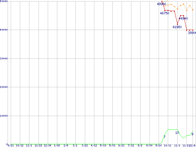 | ST31000340NS (1TB,32MB)の価格推移 | | | (2006年9月21日~2007年12月6日) |