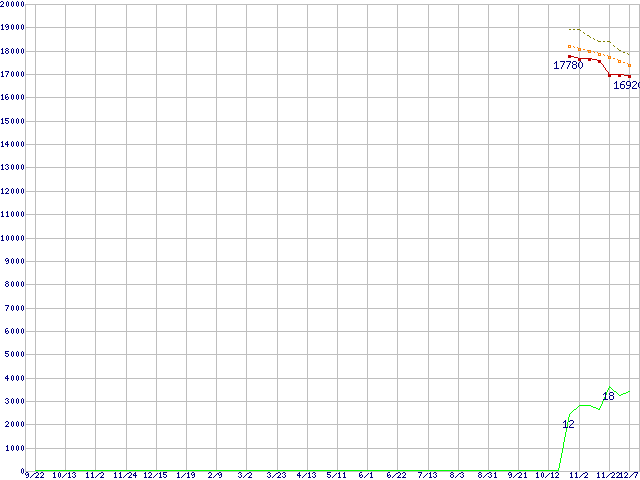 | Core 2 Duo E4600 (2.40GHz,L2 2MB)の価格推移 | | | (2006年9月22日~2007年12月7日) |