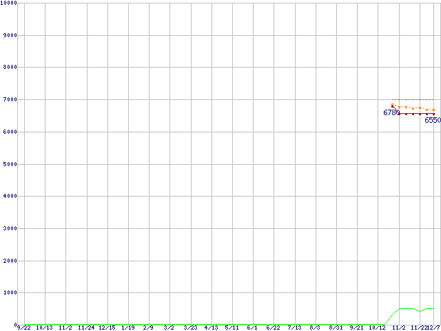 | Sempron LE-1250 (2.2GHz,L2 512KB)の価格推移 | | | (2006年9月22日~2007年12月7日) |