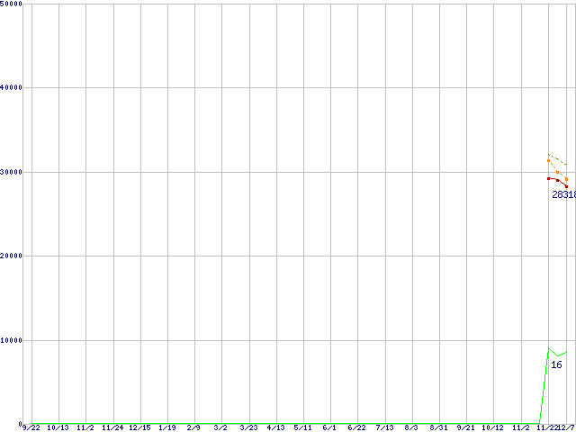 | Phenom 9500 (2.2GHz,L2 512KB×4,L3 2MB)の価格推移 | | | (2006年9月22日~2007年12月7日) |