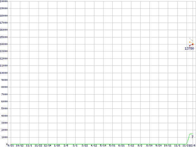 | HDP725050GLAT80 (500GB,8MB)の価格推移 | | | (2006年9月21日~2007年12月6日) |