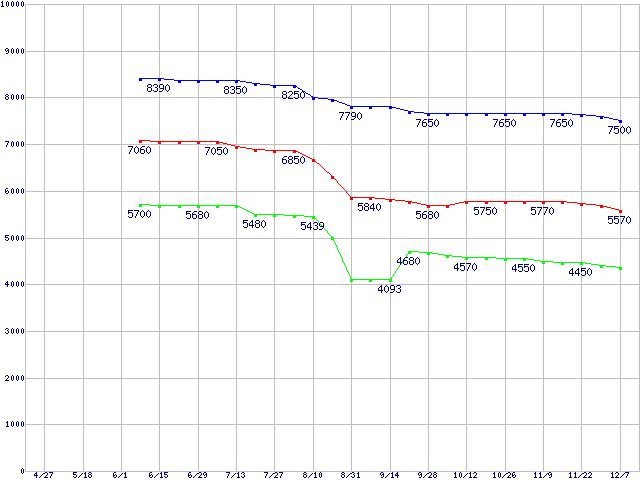 LGA771(FSB 1333MHz,Quad Core,L2 6MB×2,TDP 80W)の最安値推移