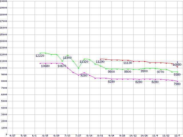 Socket AM2 (HyperTransport,Dual Core,TDP 45W)の最安値推移