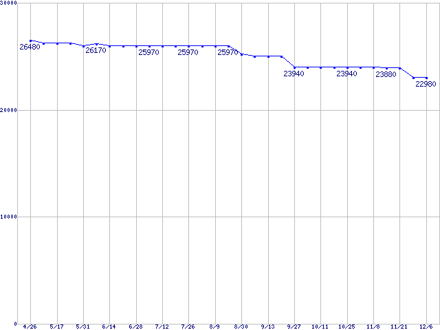 WD Raptor (10000rpm,SATA 1.5Gb/s,16MB,NCQ)の最安値推移