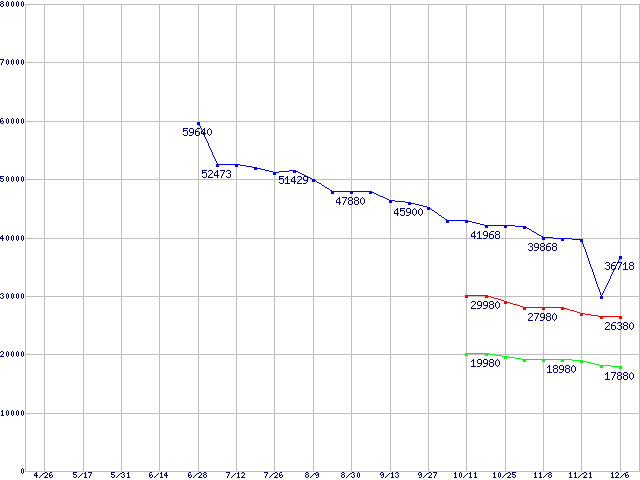 Deskstar 7K1000 (7200rpm,SATA 3Gb/s)の最安値推移