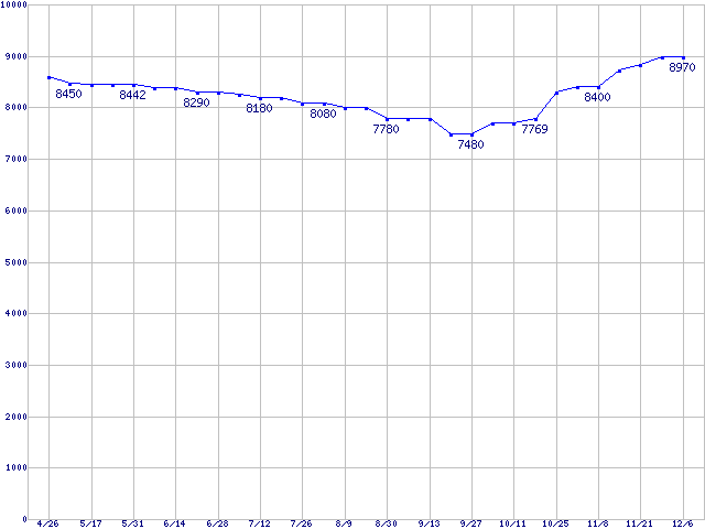 Deskstar 7K160 (7200rpm,Ultra ATA/133,8MB)の最安値推移