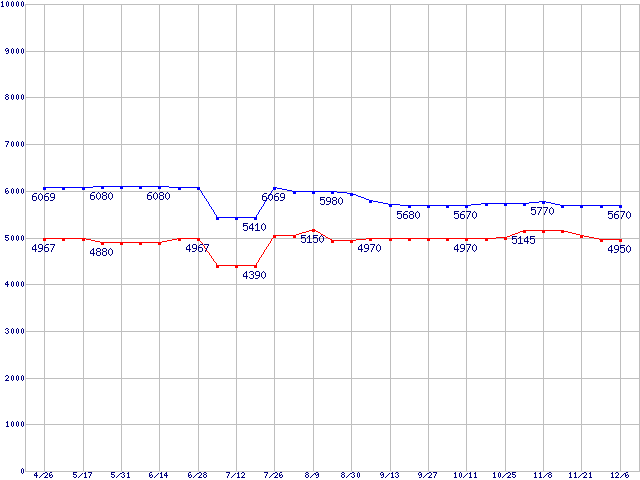 Deskstar 7K160 (7200rpm,Ultra ATA/133,8MB)の最安値推移