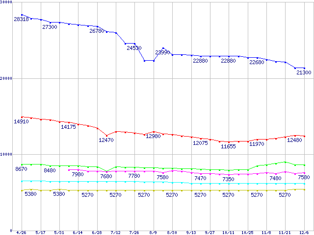 Barracuda 7200.10 (7200rpm,SATA 3Gb/s)の最安値推移