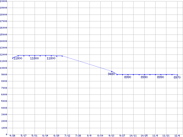 Ultrastar A7K1000 (7200rpm,SATA 3Gb/s)の最安値推移