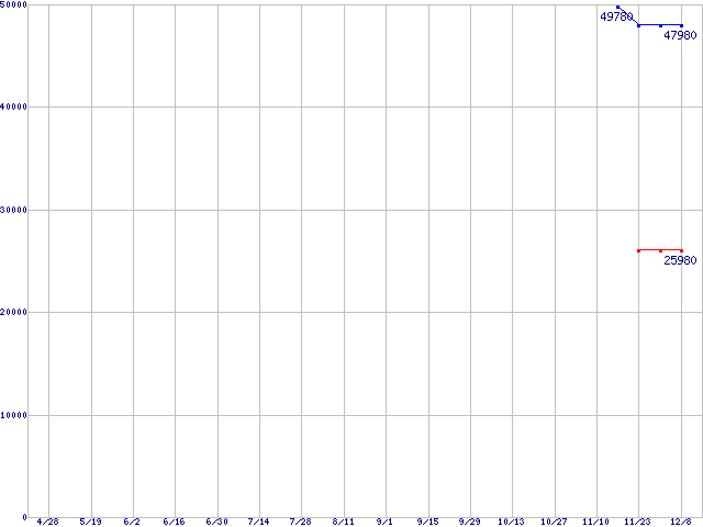 PC3200(DDR400) DDR SDRAM DIMMの最安値推移