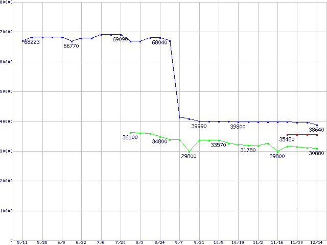 CPU主要製品(最安値3万円~6万円未満)の最安値推移