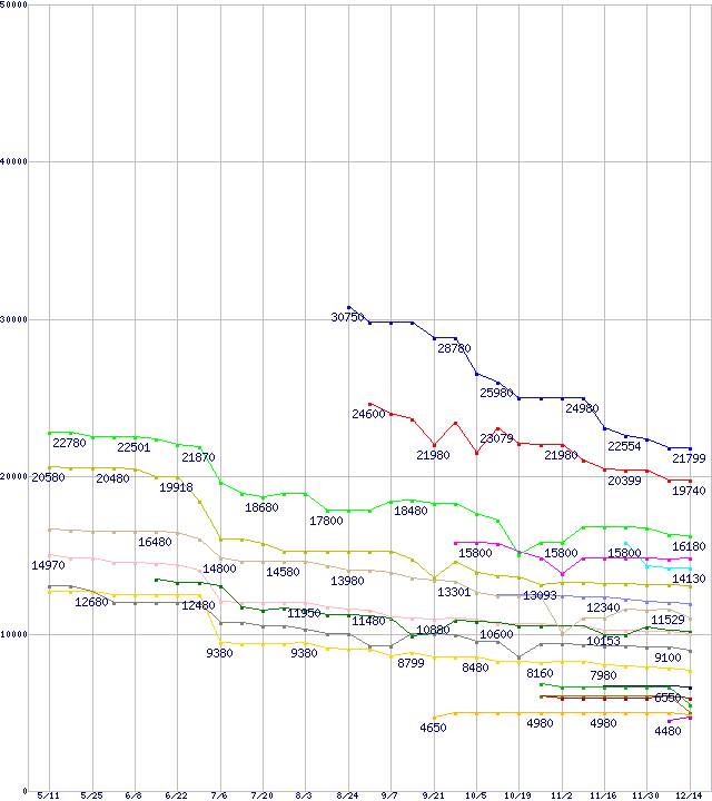 ※製品名をクリックすると個別のグラフを表示します ※点線部は販売店が確認できなかった、または調査データがないことを示します |