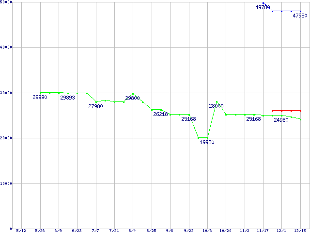 メモリ主要製品(最安値1万円以上)の最安値推移