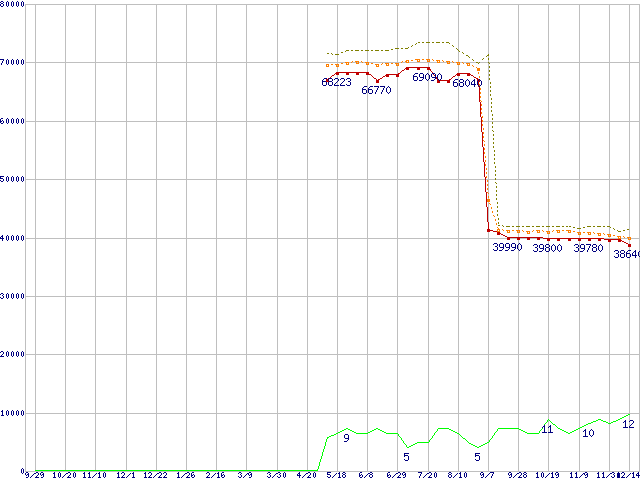 | Core 2 Duo T7700 (2.4GHz,L2 4MB)の価格推移 | | | (2006年9月29日~2007年12月14日) |