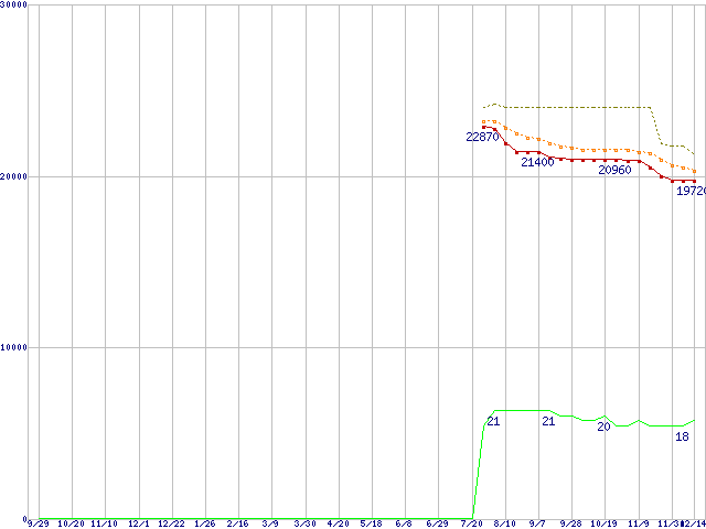 | Core 2 Duo E6550 (2.33GHz,L2 4MB)の価格推移 | | | (2006年9月29日~2007年12月14日) |