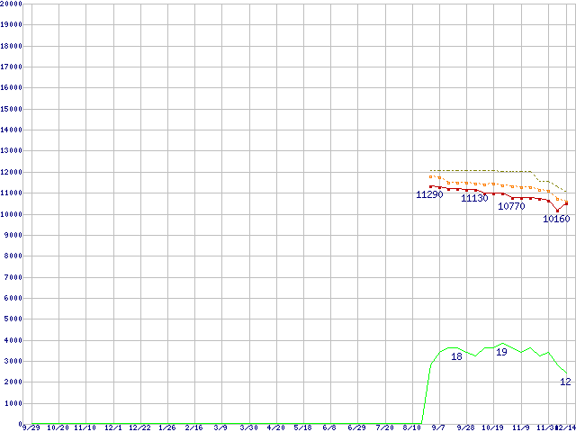 | Pentium Dual-Core E2180 (2.0GHz)の価格推移 | | | (2006年9月29日~2007年12月14日) |