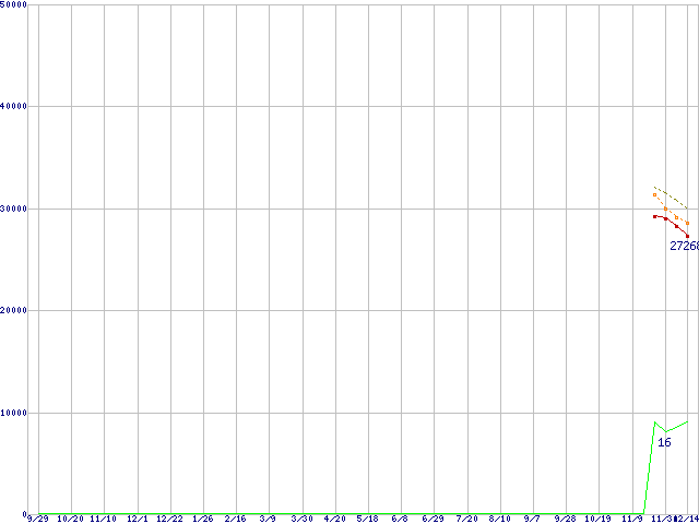 | Phenom 9500 (2.2GHz,L2 512KB×4,L3 2MB)の価格推移 | | | (2006年9月29日~2007年12月14日) |