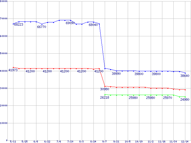 LGA775 (FSB 800MHz,L2 1MB,Dual Core,EM64T対応)の最安値推移