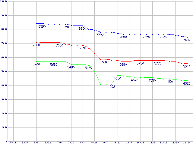 LGA771(FSB 1333MHz,Quad Core,L2 6MB×2,TDP 80W)の最安値推移