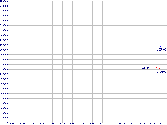 | LGA771(FSB 1333MHz,Quad Core,L2 6MB×2,TDP 120W)の最安値推移 | | | (2007年5月11日~2007年12月14日) |