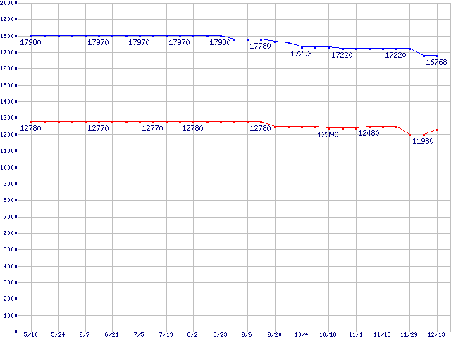 WD Raptor (10000rpm,SATA 1.5Gb/s,16MB,NCQ)の最安値推移