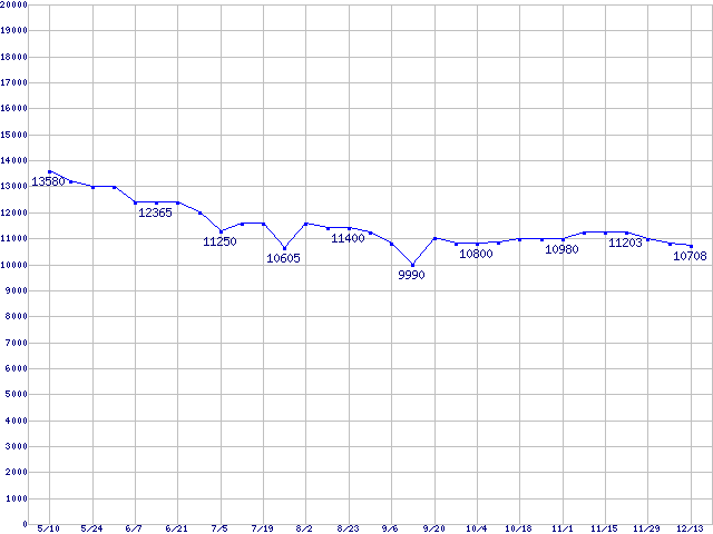 Ultrastar A7K1000 (7200rpm,SATA 3Gb/s)の最安値推移