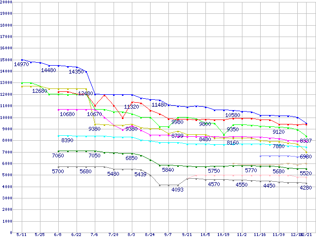 CPU主要製品(最安値1万円~2万円未満)の最安値推移