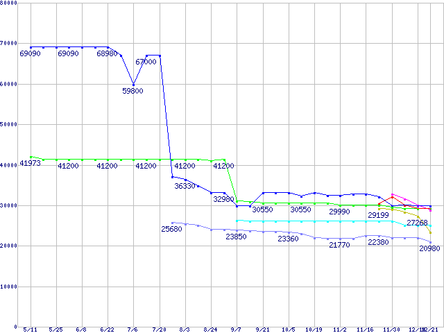CPU主要製品(最安値1万円~2万円未満)の最安値推移