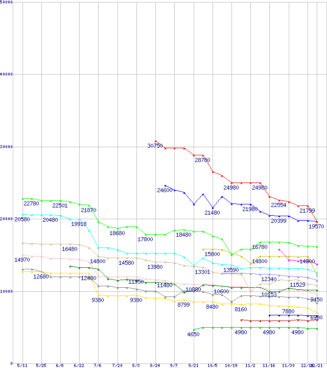 | AMD系CPUの最安値推移 | | | (2007年5月11日~2007年12月21日) |