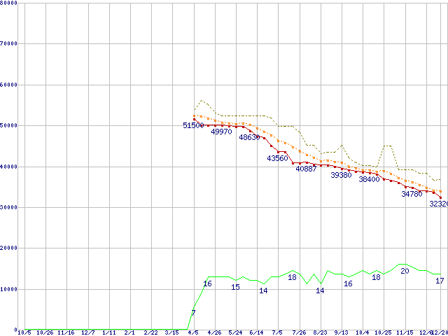 | HDS721010KLA330 (1TB,32MB)の価格推移 | | | (2006年10月5日~2007年12月20日) |