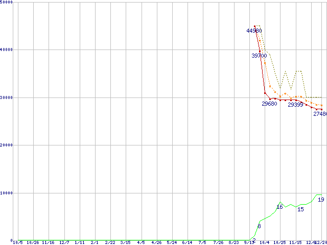 | WD10EACS (1TB,16MB)の価格推移 | | | (2006年10月5日~2007年12月20日) |