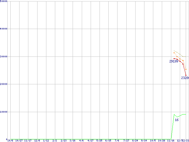| Phenom 9500 (2.2GHz,L2 512KB×4,L3 2MB)の価格推移 | | | (2006年10月6日~2007年12月21日) |