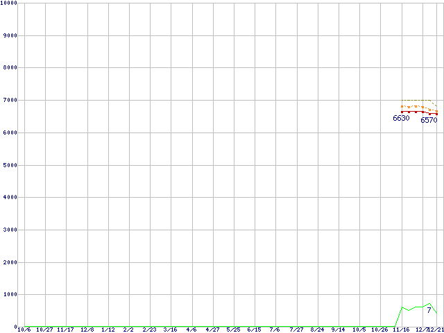 | Athlon 64 LE-1620 (2.4GHz,L2 1MB)の価格推移 | | | (2006年10月6日~2007年12月21日) |