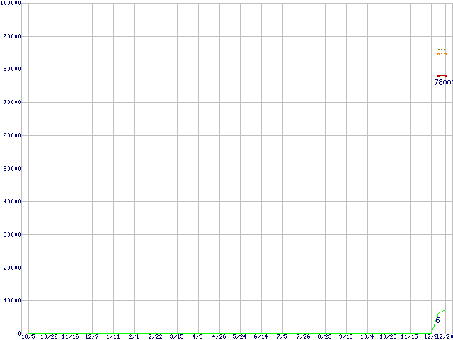 ※このグラフは過去のデータも税率5%相当に調整した税込み相当額のグラフです。 税率変更や、総額表示方式導入(2004年4月)の影響は除いています。 | | | ●凡例 | 最安値 (点線部は販売店未確認 または未調査) | 平均値 | 最高値 | ショップ数 |
