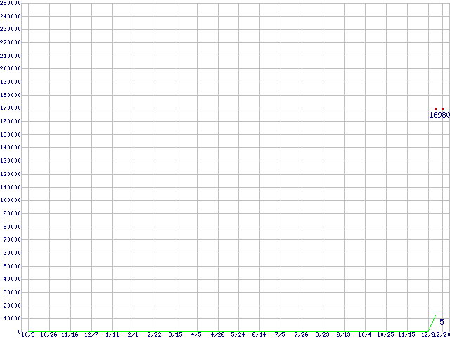 ※このグラフは過去のデータも税率5%相当に調整した税込み相当額のグラフです。 税率変更や、総額表示方式導入(2004年4月)の影響は除いています。 | | | ●凡例 | 最安値 (点線部は販売店未確認 または未調査) | 平均値 | 最高値 | ショップ数 |