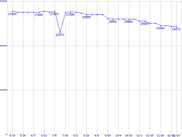 | WD Raptor X (10000rpm,SATA 1.5Gb/s,16MB,NCQ)の最安値推移 | | | (2007年5月10日~2007年12月20日) |