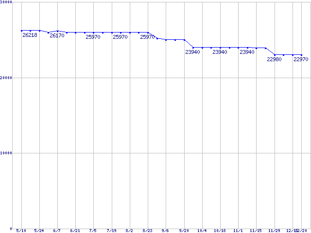WD Raptor (10000rpm,SATA 1.5Gb/s,16MB,NCQ)の最安値推移