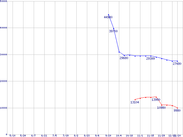 WD Raptor (10000rpm,SATA 1.5Gb/s,16MB,NCQ)の最安値推移