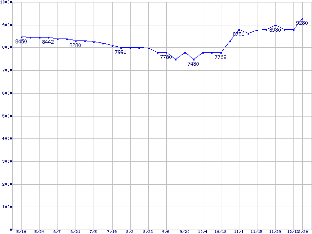Deskstar P7K500 (7200rpm,SATA 3Gb/s)の最安値推移