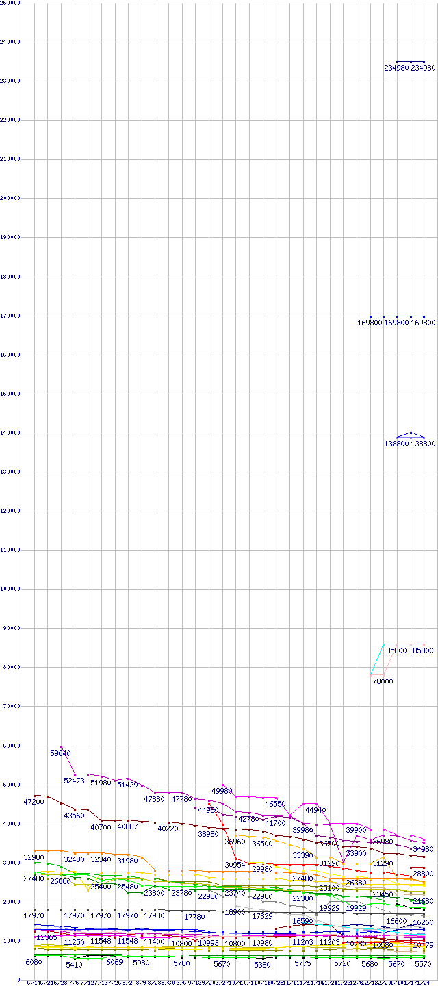 [前グラフ]:WD Caviar SE16 (7200rpm,SATA 3Gb/s,16MB)の最安値推移