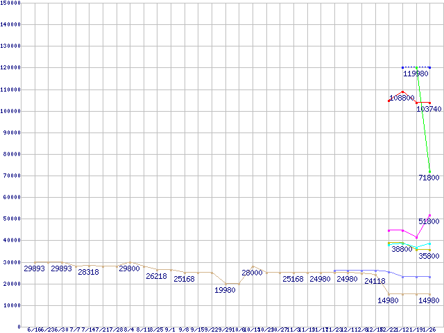 メモリ主要製品(最安値1万円以上)の最安値推移