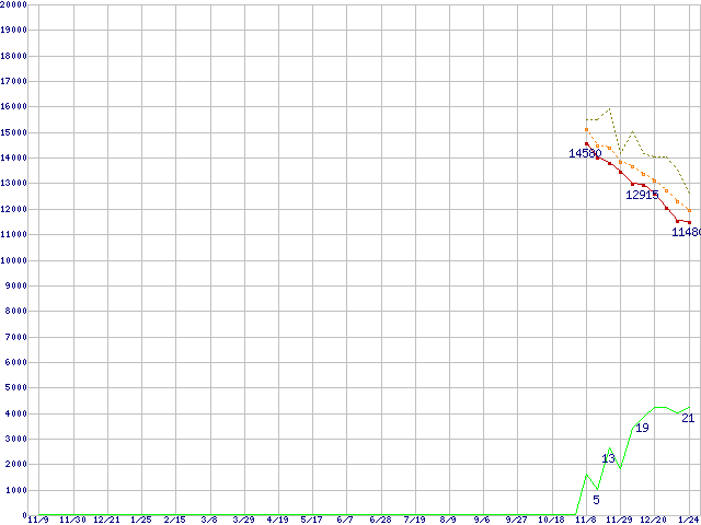 | HDP725050GLA360 (500GB,16MB)の価格推移 | | | (2006年11月9日~2008年1月24日) |