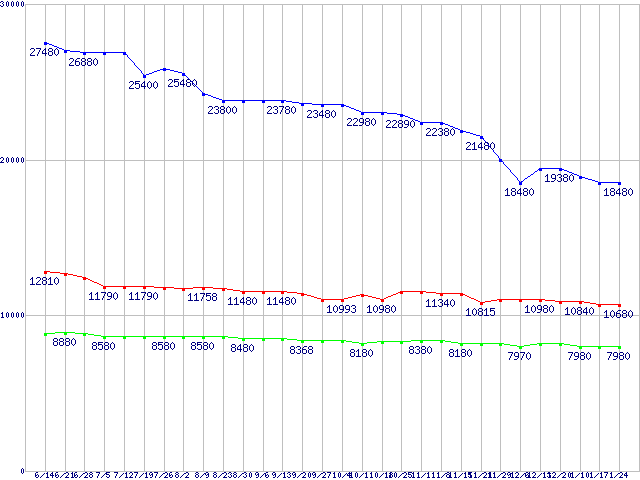 WD Caviar GP (7200rpm,SATA 3Gb/s,16MB)の最安値推移